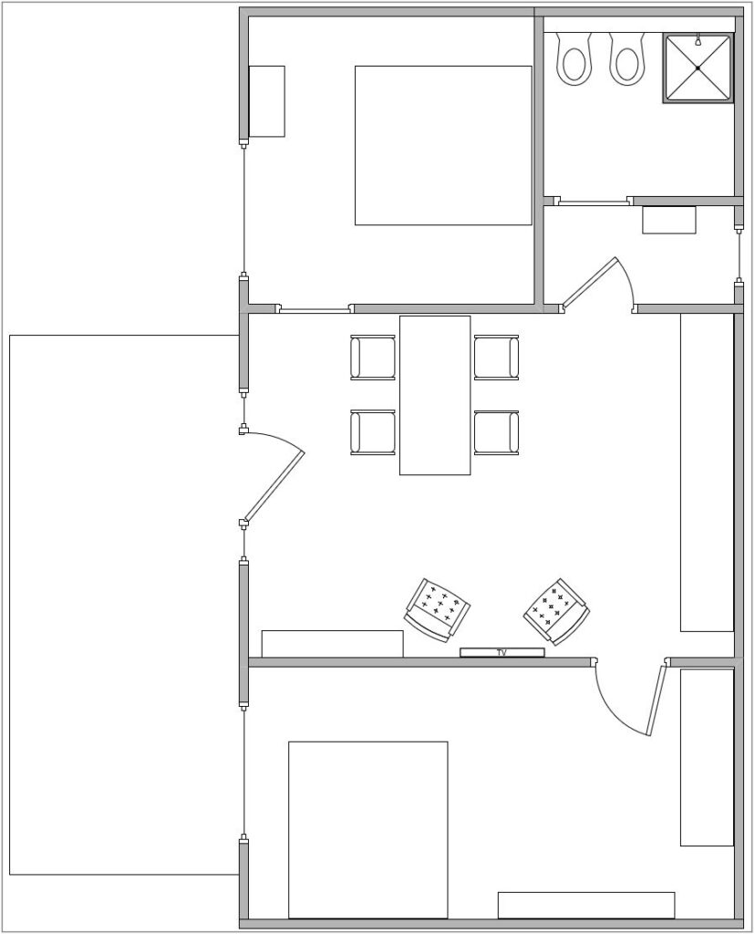 - Bad mit Dusche, WC, Bidet und Waschbecken