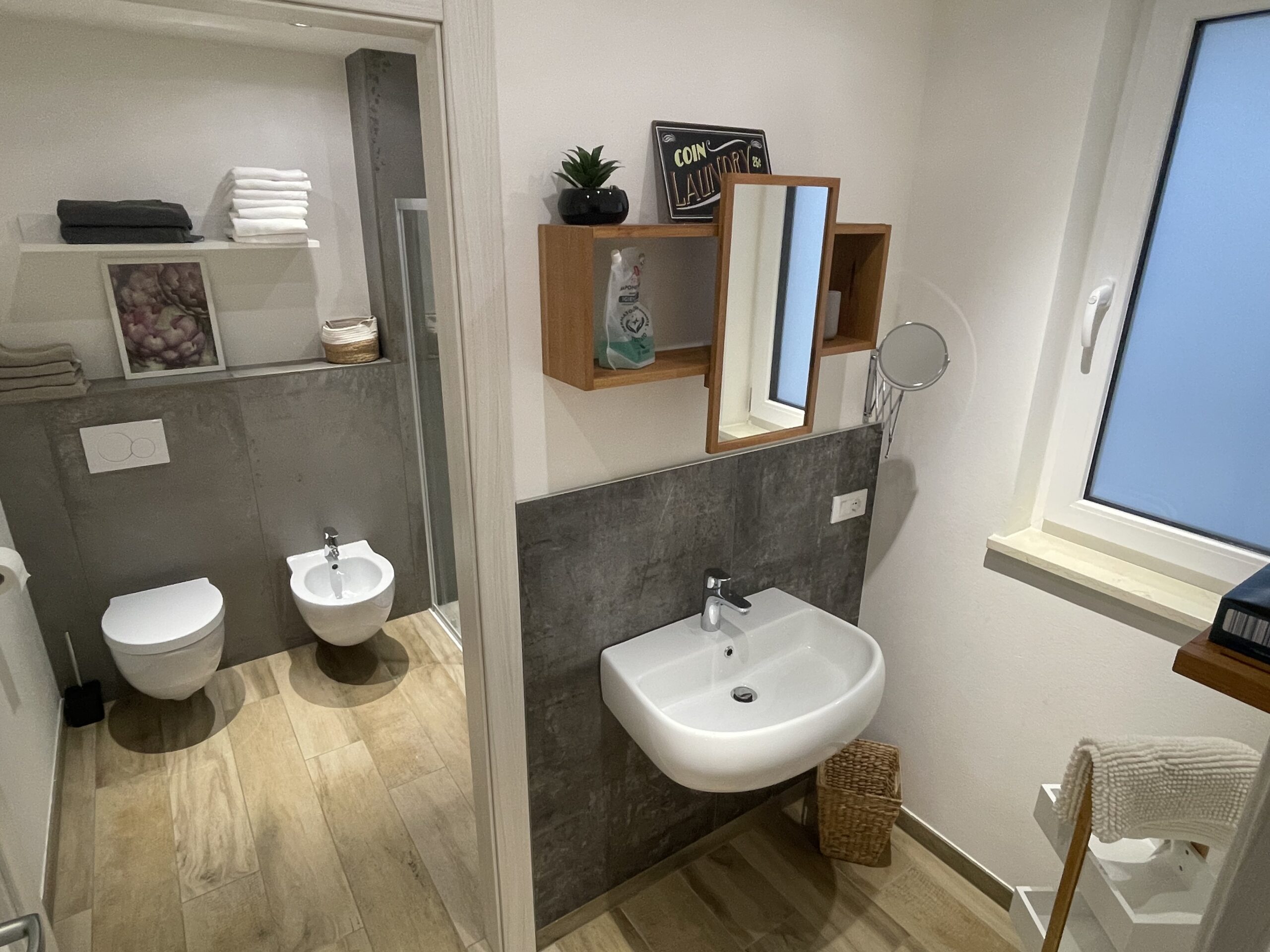 - Bad mit Dusche, WC, Bidet und Waschbecken