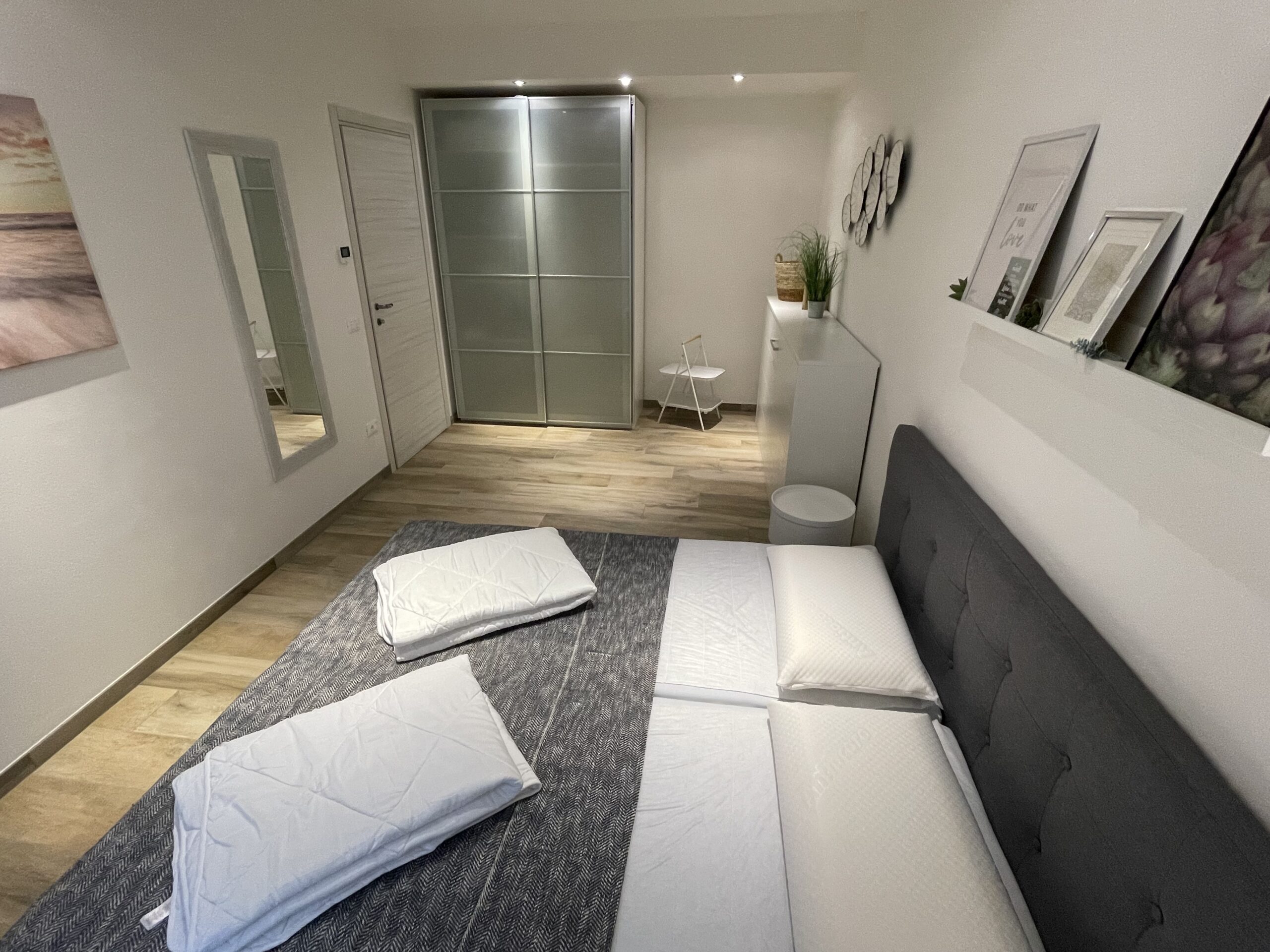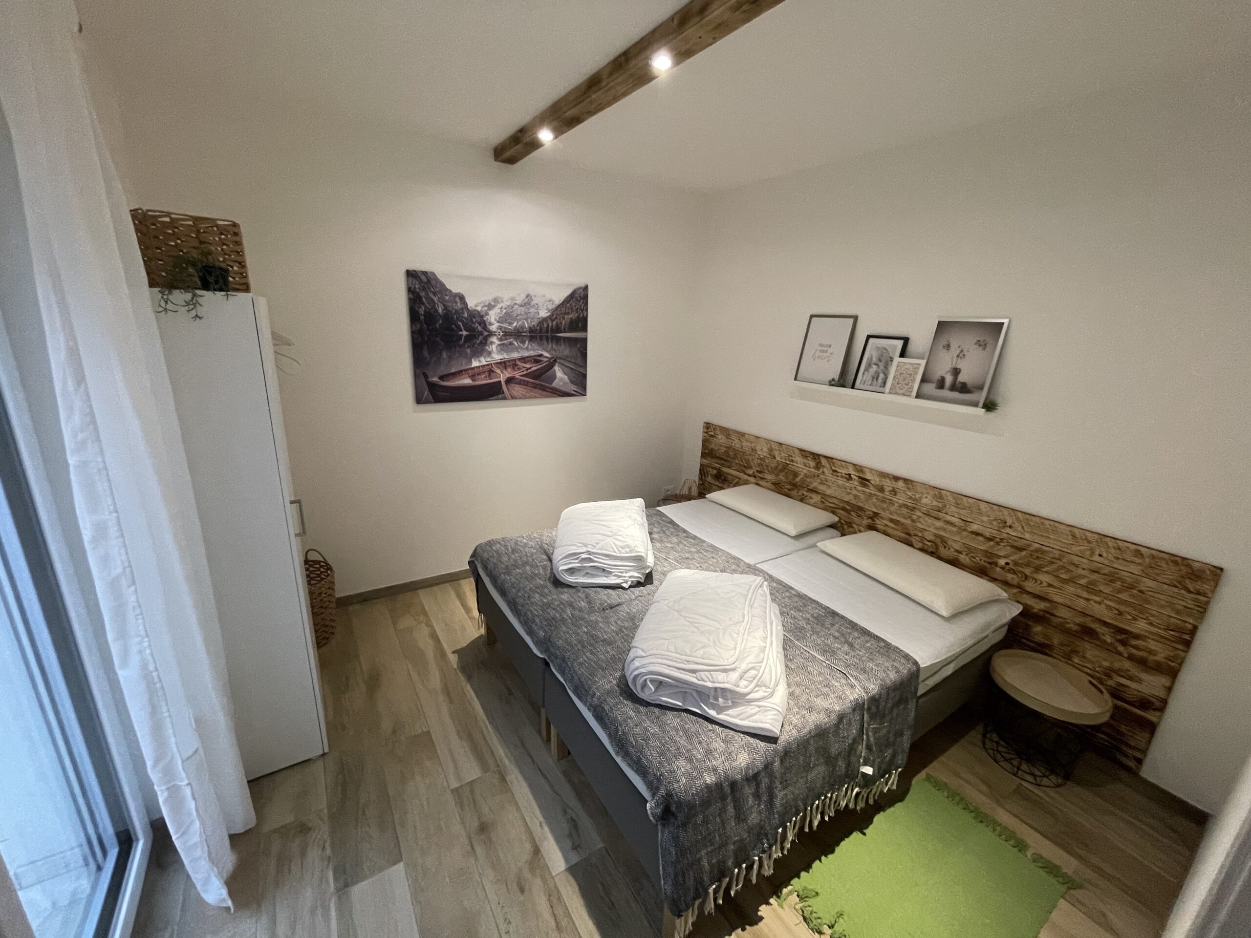 - Jeweils zwei vollwertige Betten mit Lattenrost und Hochwertigen Matratzen. Im kleineren Schlafzimmer lassen sich die Betten auseinanderschieben. Das große Schlafzimmer hat noch ein drittes vollwertiges Klappbett.