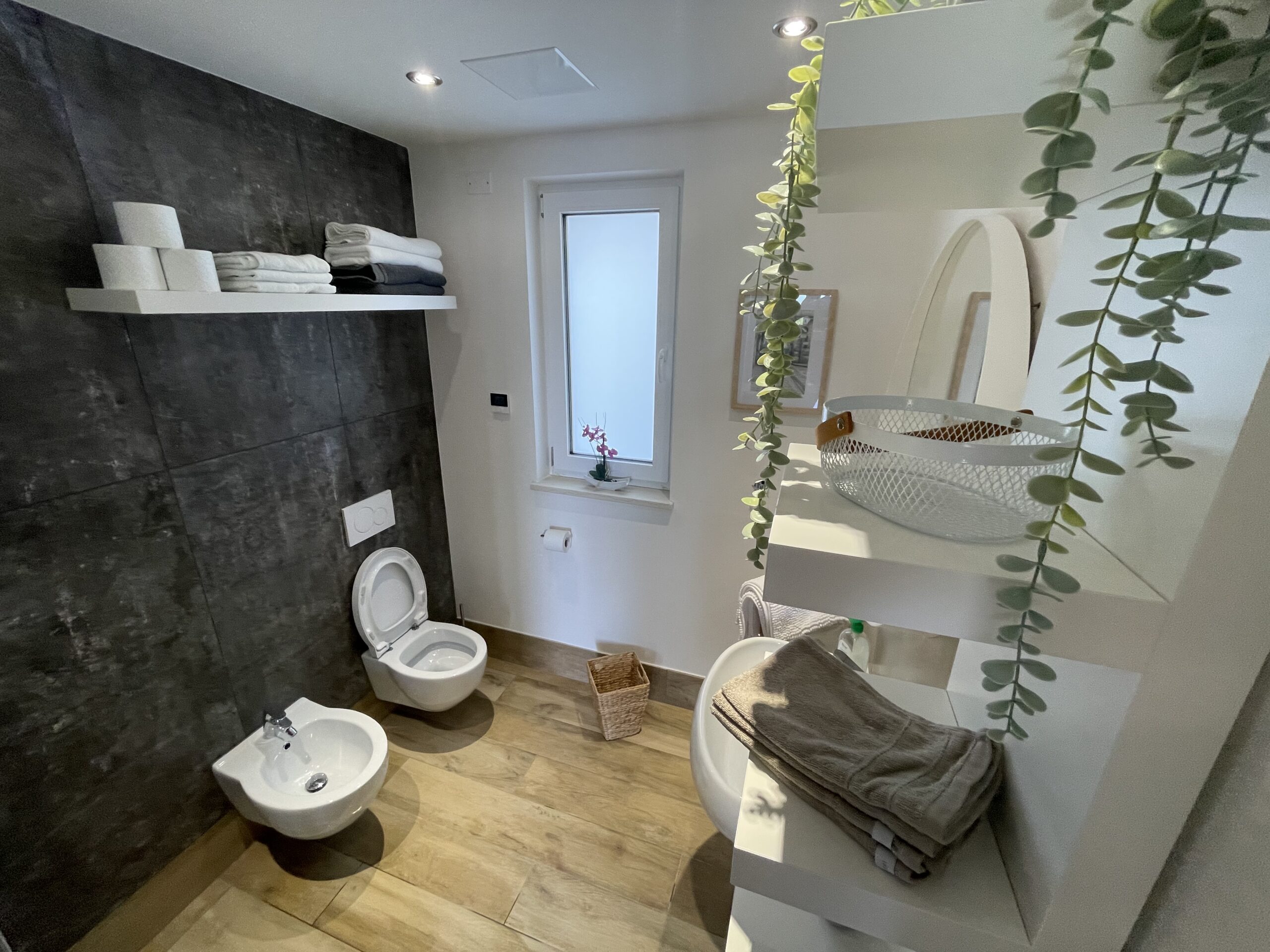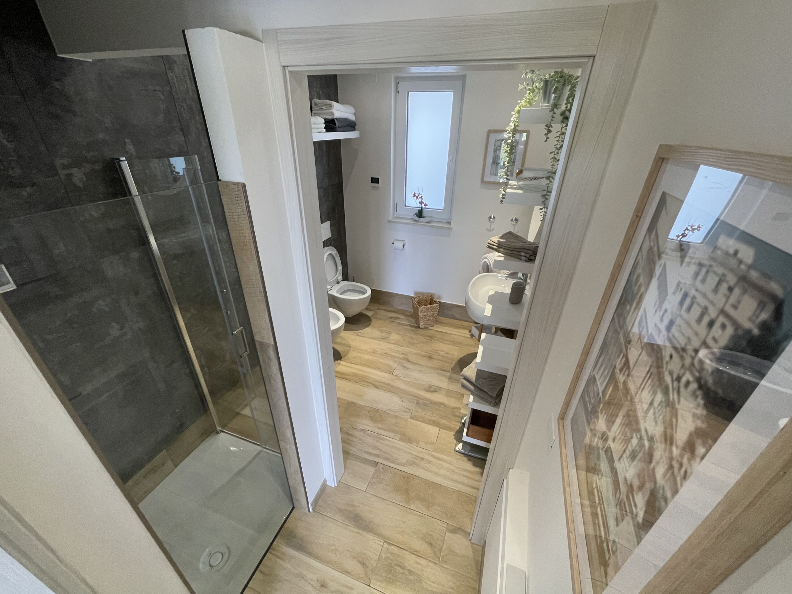 - Bad mit Dusche, WC, Bidet und Waschbecken