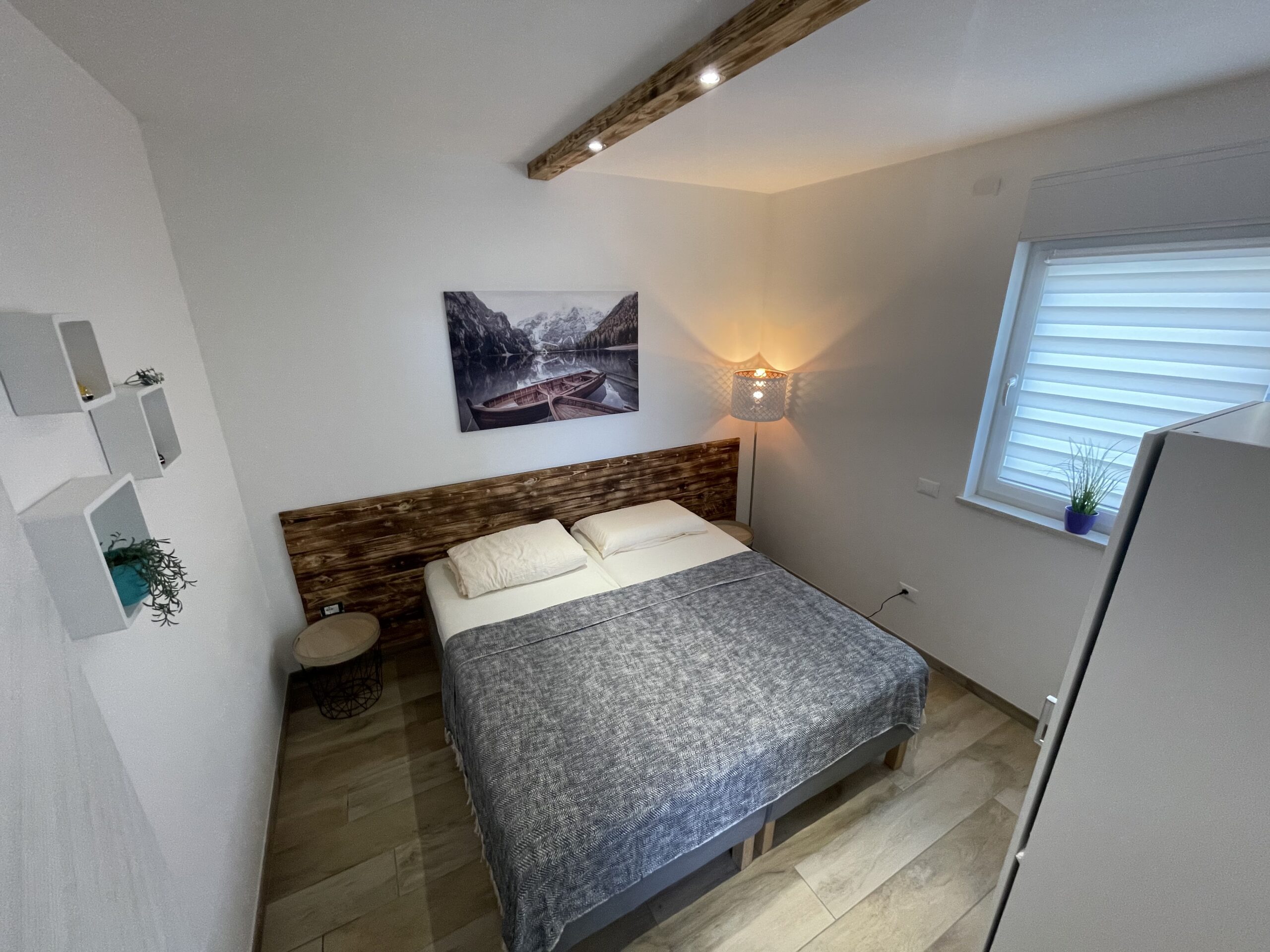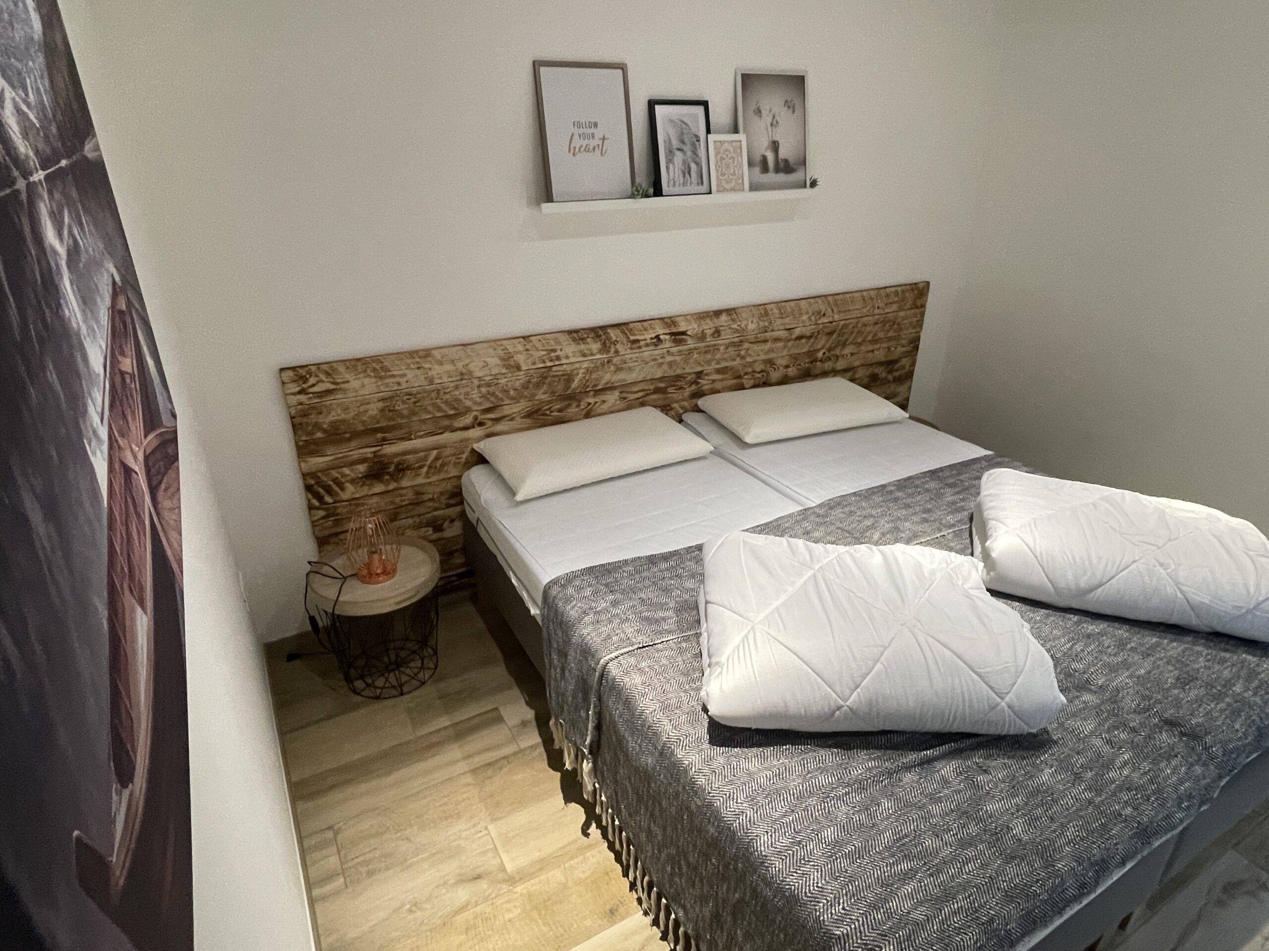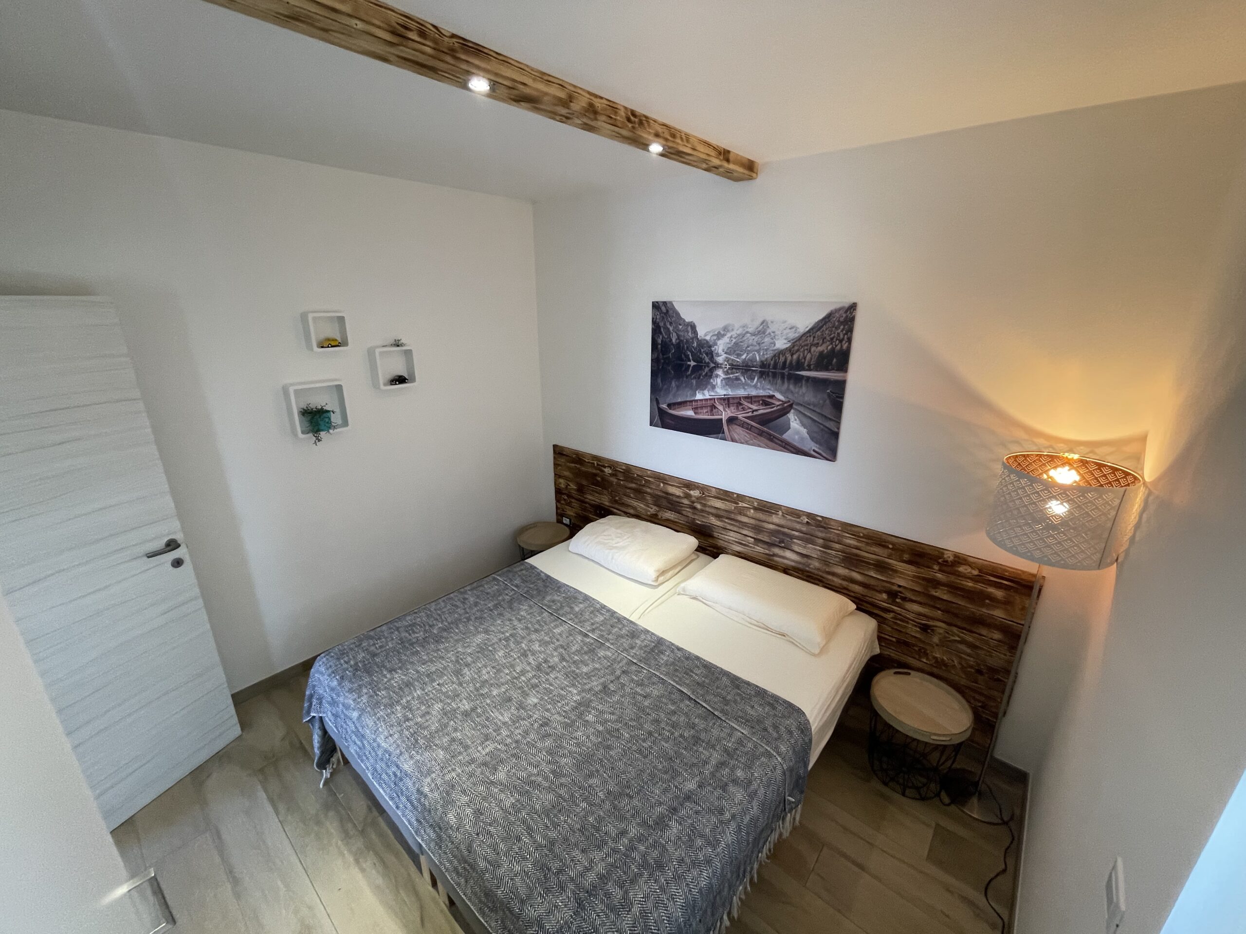 - Jeweils zwei vollwertige Betten mit Lattenrost und hochwertigen Matratzen. Im kleineren Schlafzimmer lassen sich die Betten auseinander schieben.